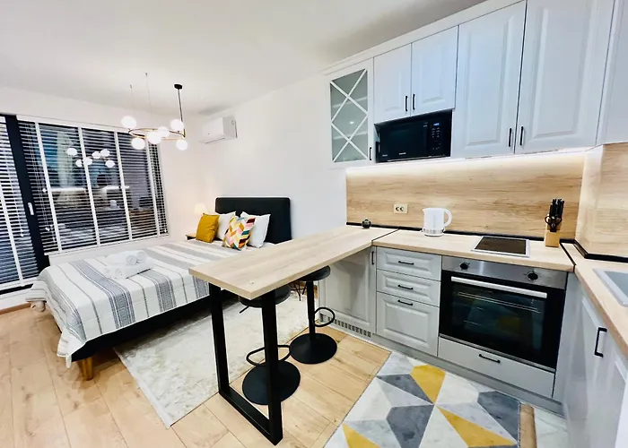 Obiekt oferuje urządzenie do parzenia kawy/herbaty oraz pełnowymiarową kuchnię z kuchenką mikrofalową, czajnikami elektrycznymi i lodówką. W małej odległości do przystanku autobusowego Studentska.